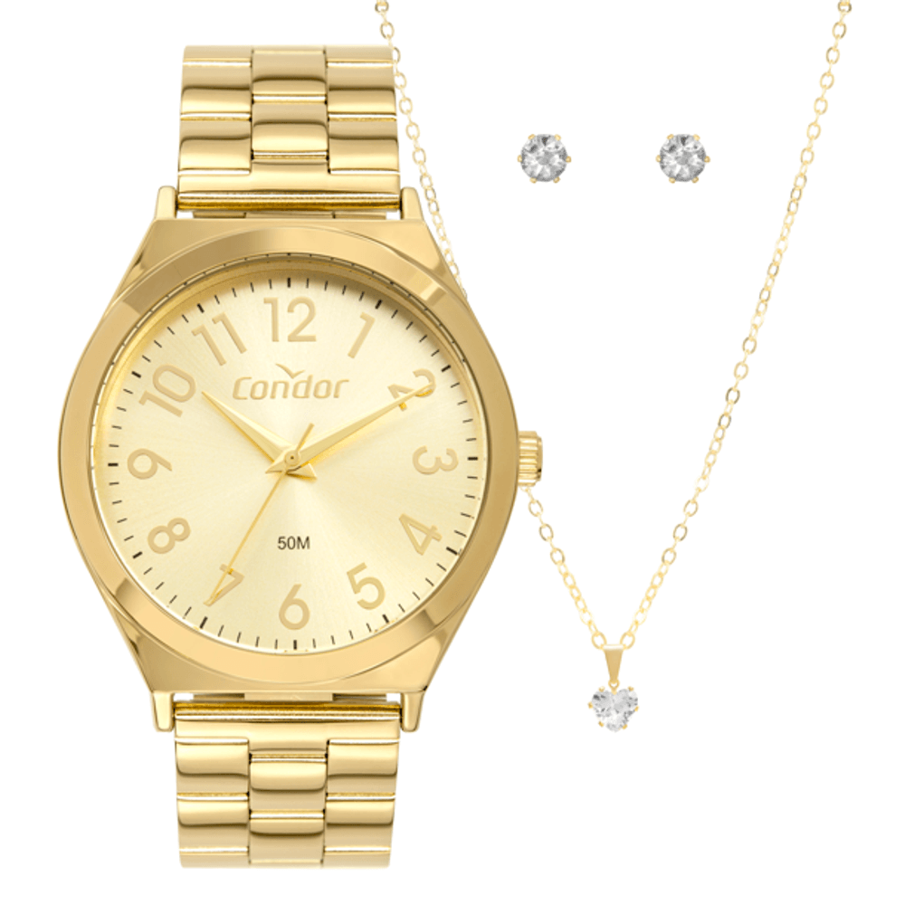 Kit Relógio Condor Feminino Dia A Dia Dourado - CO2036MZH/K4X - Kit Condor Feminino Dia A Dia Dourado - CO2036MZH/K4X
