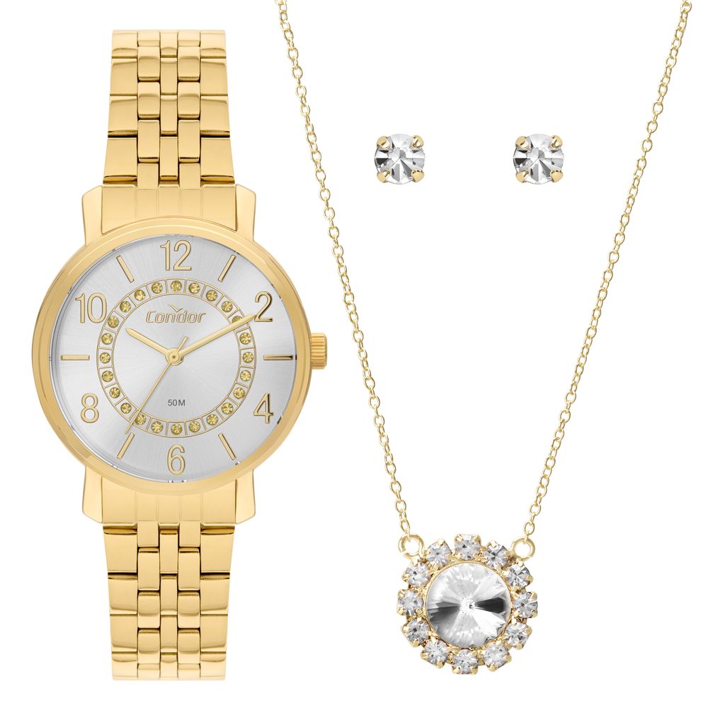 Kit Relógio Condor Feminino Elegante Dourado - CO2039MUK/K4K