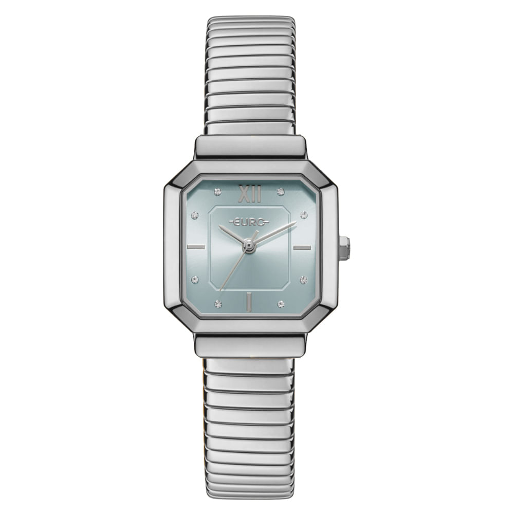 A Coleção Serpentes traduz elegância com personalidade em cada detalhe. Inspirada na força e na transformação que a serpente simboliza, ela envolve o look com curvas marcantes e acabamentos sofisticados, trazendo detalhes poderosos que elevam qualquer produção. Para a mulher Euro que se empodera e brilha, no seu mood, do seu jeito. Modelo em banho prateado, mostrador azul, pulseira de tubogás e caixa quadrada.