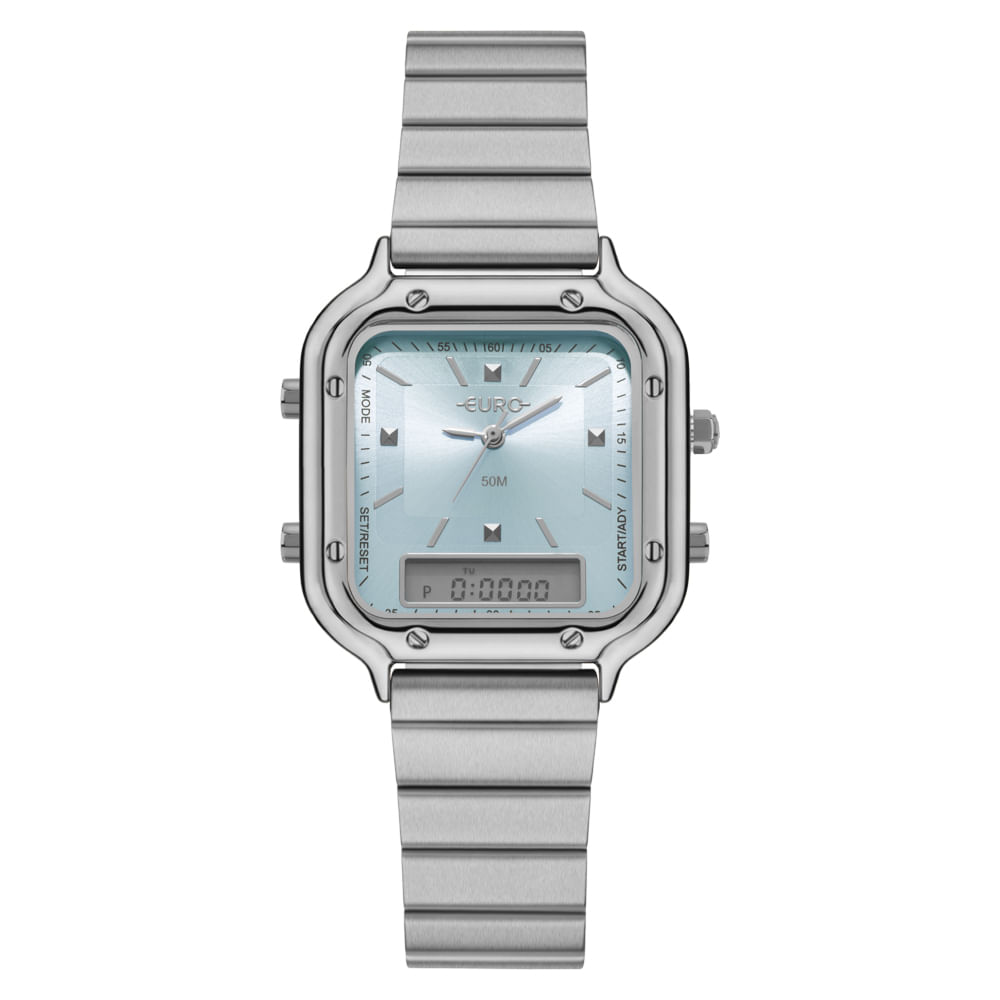 A coleção Fashion Fit Sporty une atitude e sofisticação em um design marcante e contemporâneo. Com presença forte, acabamento em aço e mostrador imponente, luneta com parafusos aparentes, é um acessório funcional e cheio de personalidade. Modelo em banho prateado com mostrador azul, anadigi com caixa geométrica e identidade marcante.